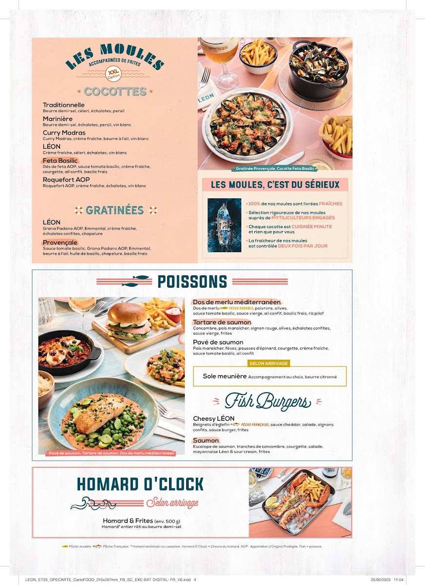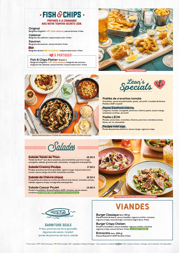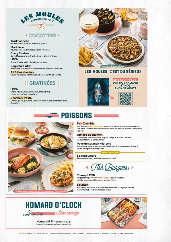 Welcome to Léon - Servon, located on the charming Route Nationale in Servon, France. This bustling restaurant is a haven for seafood lovers, offering a delectable array of dishes that celebrate the ocean's bounty. Among the standout offerings are the Fritto Misto, featuring crispy calamari and fish croquettes accompanied by a zesty tartar sauce, and the sumptuous Cocotte Moules, where traditional and inventive preparations like Curry Madras or Roquefort coexist, each providing a unique taste experience.